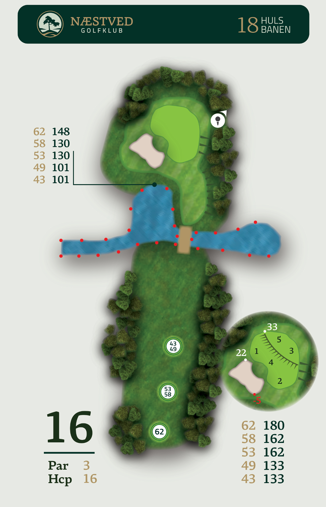 Her kan du se en baneguide over vores 18-huls bane